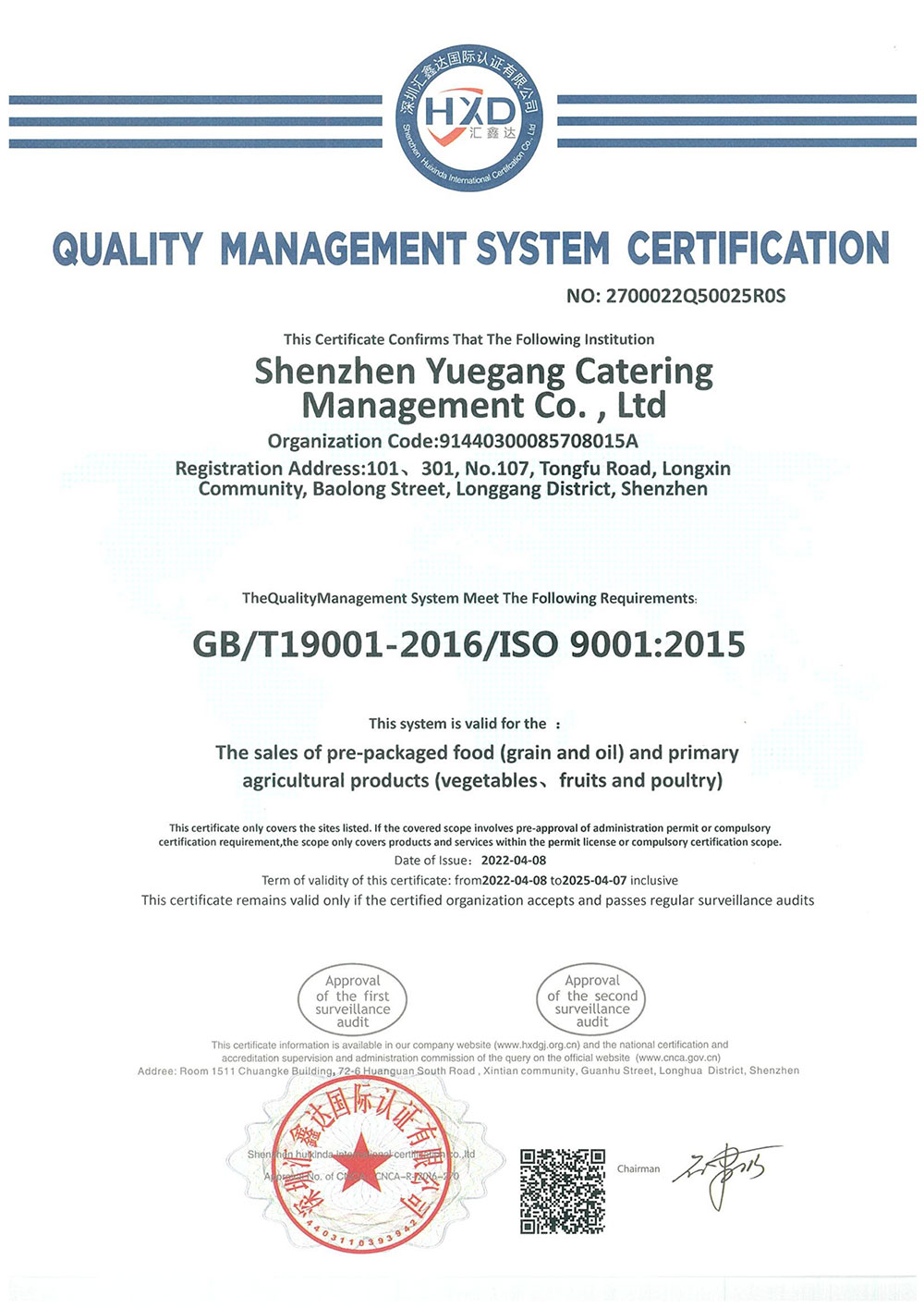 深圳市粵崗餐飲管理有限公司,是一家集蔬菜種植和農(nóng)副產(chǎn)品配送為一體的專業(yè)型餐飲公司,主要為學(xué)校、工廠企事業(yè)機(jī)關(guān)單位提供蔬菜和農(nóng)副產(chǎn)品配送服務(wù)。公司自成立以來(lái)始終以質(zhì)優(yōu)價(jià)廉、服務(wù)至上為原則,嚴(yán)格按照ISO:9001國(guó)際標(biāo)準(zhǔn)體系進(jìn)行管理。同時(shí)建立了行業(yè)領(lǐng)先的配送中心、大型冷庫(kù)和保鮮庫(kù)、檢測(cè)中心以及專業(yè)化的配送團(tuán)隊(duì),能長(zhǎng)期安全、穩(wěn)定、準(zhǔn)時(shí)的配送貨物。我們所有蔬菜均經(jīng)過(guò)初步加工、無(wú)黃葉,無(wú)泥沙等雜質(zhì),利用率達(dá)97%以上...保障向用戶提供的各類食材的衛(wèi)生和質(zhì)量。公司為了適應(yīng)不同客戶的需求,配有專業(yè)人員和配送車輛,實(shí)行“一對(duì)一”的服務(wù)體制,一心一意的為客戶服務(wù),秉承粵崗誠(chéng)實(shí)守信、服務(wù)第一、客戶至上的服務(wù)標(biāo)準(zhǔn),真正讓客戶花最少的錢吃最好的菜?;泹彾嗄陙?lái)何以欣欣向榮,因?yàn)槲覀冎乐挥杏掠趽?dān)當(dāng)責(zé)任,才能承擔(dān)更大的責(zé)任,就是因?yàn)?粵崗員工貫徹公司態(tài)度決定一切、細(xì)節(jié)決定成敗的真理,從質(zhì)量抓起,從服務(wù)做起,才創(chuàng)造了如今的規(guī)?;?yīng)、統(tǒng)一性配送、專業(yè)化服務(wù)的粵崗。
